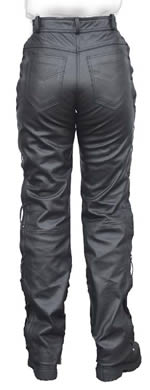 Lambski Leather Pantsare designed for casual use and won't hold up for continuous motorcycle riding. So for Biker wear we recommend the Cowhide. They are great looking and the lacing allows the pants to fit the contour of your body well. The Waist is at the regular place, not low riding. Features include belt loops, fly front with zipper and snap, pockets front and back. Imported |